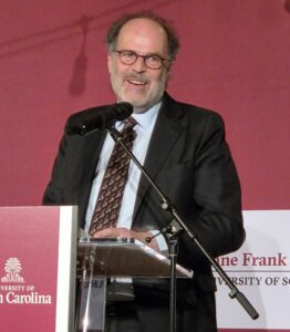 I wrote “We Survived The Holocaust: The Bluma and Felix Goldberg Story”: I never expected the kind of recognition I just received. On Monday evening. February 9, The Anne Frank Center (at the University of South Carolina campus and only one of three in the world) held its bi-annual awards ceremony. I sat in awe as teachers and students, not just from South Carolina, were recognized and feted.  Ronald Leopold, the head of the Anne Frank House in Amsterdam was present to receive the award for Outstanding Stewardship of Anne’s Legacy. Late last year. I was informed that I would be the first recipient of the Anne Frank Award for Leadership in Arts and Letters. I’m still overwhelmed. A huge thanks to family and friends who came out to support and celebrate the Center’s continued education mission.